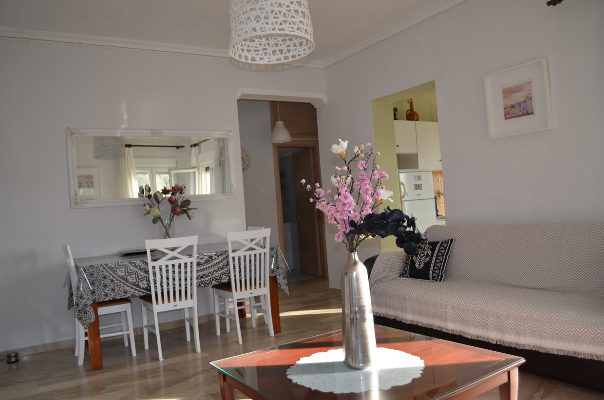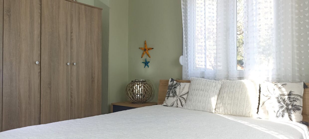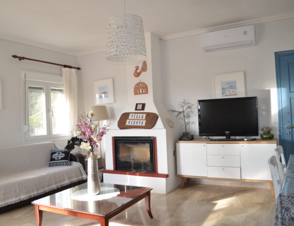 Villa Siesta is a cozy 75 m² whole house, perfectly designed to accommodate up to 5 adults. Located just 100 meters from the beach, it is nestled among olive trees on a hill, offering views of the Aegean Sea. The hosts speak Greek, English, and French, ensuring a warm welcome and easy communication for international guests.