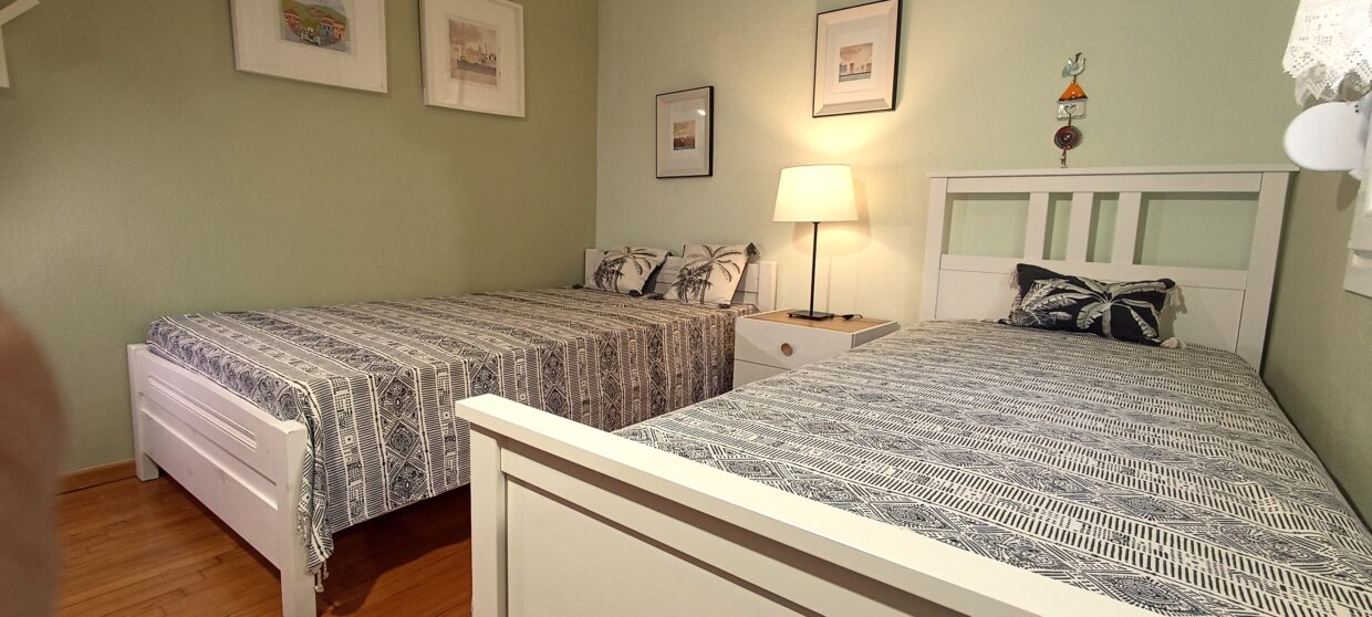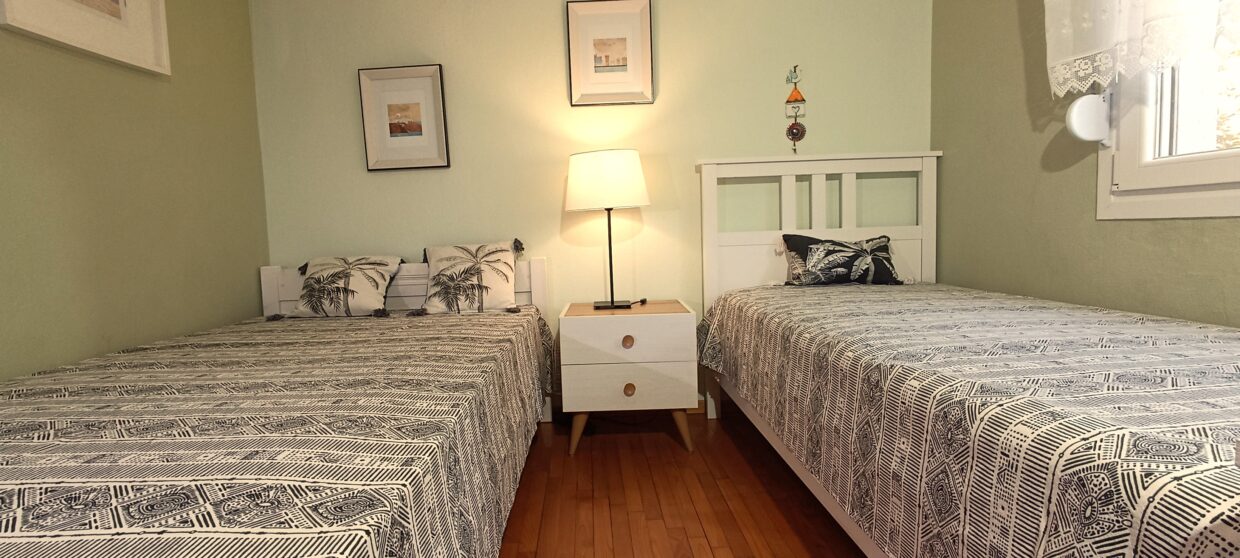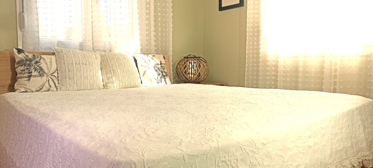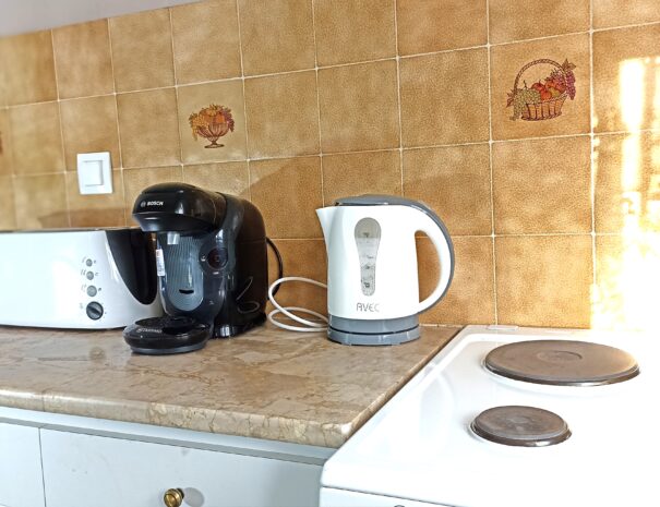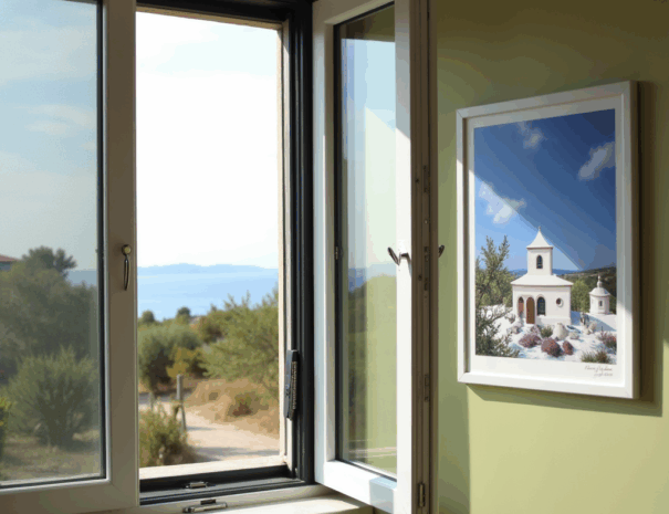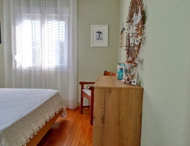Villa Siesta features two comfortable bedrooms, with Bedroom 1 offering an extra-large double bed and Bedroom 2 furnished with two single beds. The spacious living room provides a perfect spot for relaxation, while the fully equipped kitchen ensures all modern conveniences for your stay. The villa includes a full bathroom and a balcony with a stunning sea view. Outside, guests can enjoy a large 500 m² enclosed garden, filled with olive trees and flowers, creating a serene outdoor space.